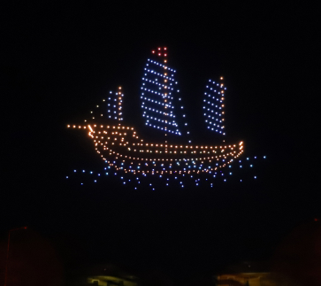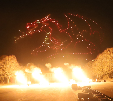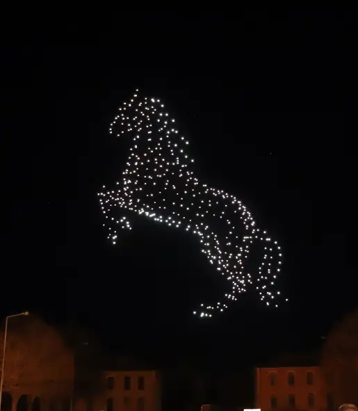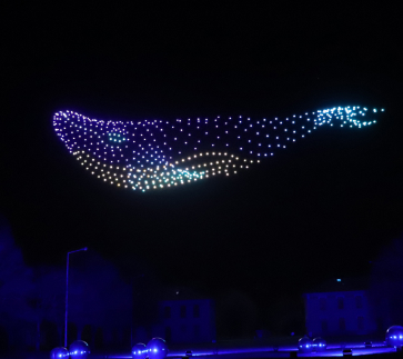 Un essaim de drones s’élève, se synchronise et dessine dans la magie de la nuit. Des figures de plus d’une dizaine de mètres, directement au-dessus de vous.